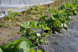 畑の方は、イチゴが花盛りで、