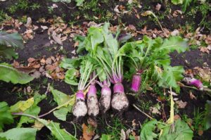 おばあさまと一緒に焼き畑により「升田かぶ」を