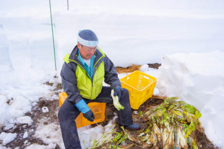 雪の中から掘り出す野菜があると聞き、