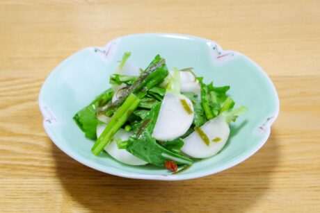 金町小かぶは、がごめ昆布と合わせて浅漬けに。
