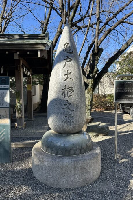 亀戸香取神社の境内に建つ「亀戸大根之碑」。